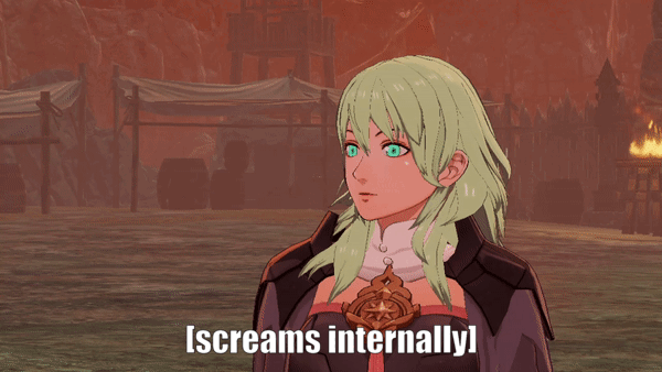 [Slightly OT: Seriously, there were two instances when I literally burst out laughing while playing this game and this was one of them: Byleth’s reaction above to Jeralt laughing at Alois’s terrible joke in Golden Wildfire. IDK it’s only here and not the other two, where he doesn’t make a joke at all in AG and Byleth just sighs in SB, but this reaction was gif worthy in GW. Feel free to use.]